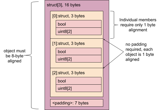 array<T, N>,包含 N 个类型为 T 元素的数组,或隐式地包含该元素 (由 7 个元素组成的table将具有N=7)。 - 行外大小始终填充为 8 个字节。我们会指明 尺寸如下所示(不包括内边距)。
